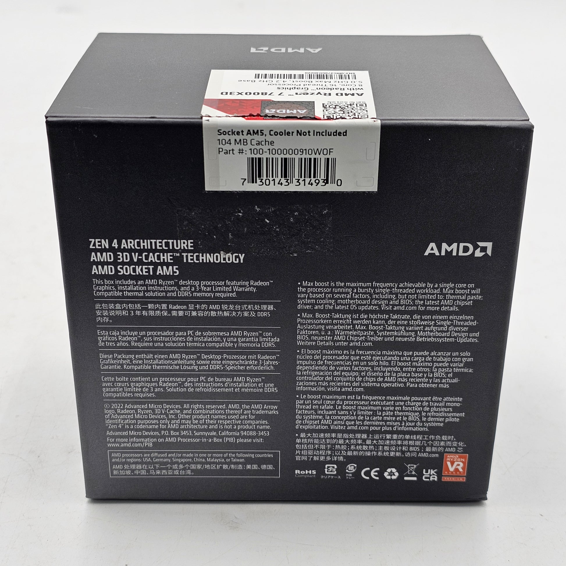 AMD RYZEN 7 7800X3D 4.20GHz 8 Core 100-000000910 16 Thread AM5