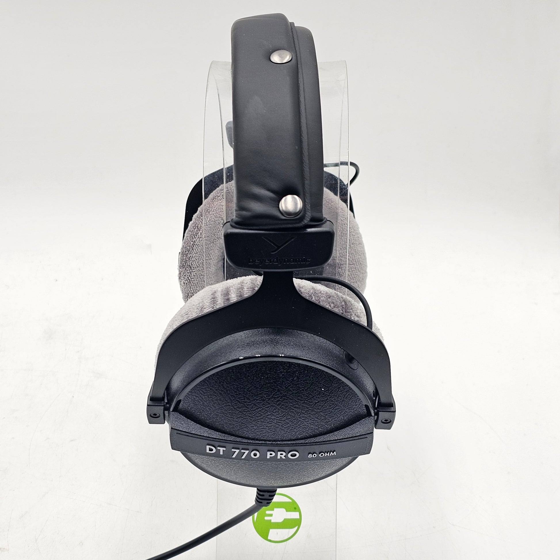 The ear cup housing is in good condition with no damage and minimal wear. The ear cup cushions are in good condition, clean and have no odor. The headband is in good condition with little to no wear. The buttons have no signs of heavy use or wear. The hinges are in good condition with minor signs of use. The ports are clean and in good condition. The earbuds are in good condition and clean. The wire is in good condition with little signs of wear.