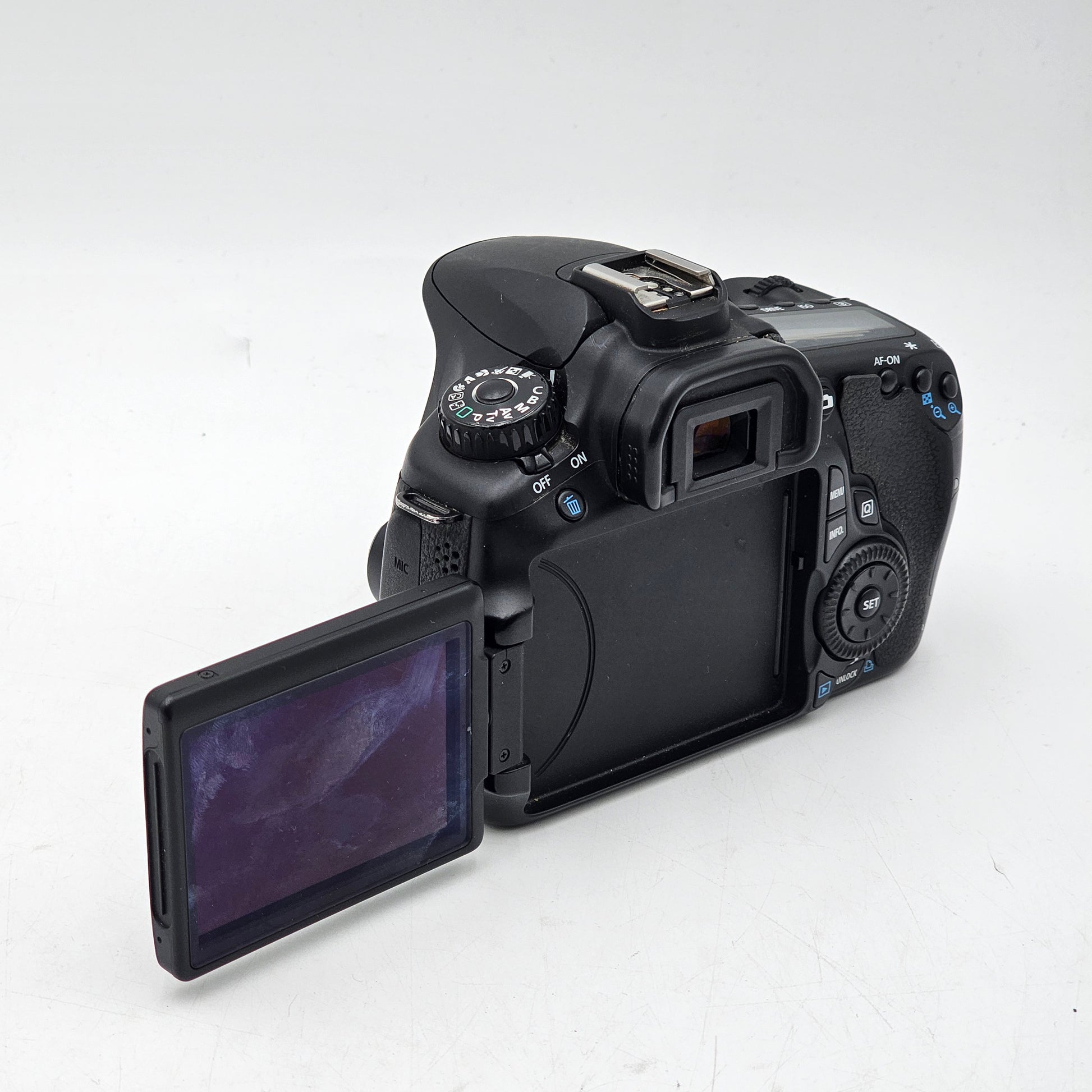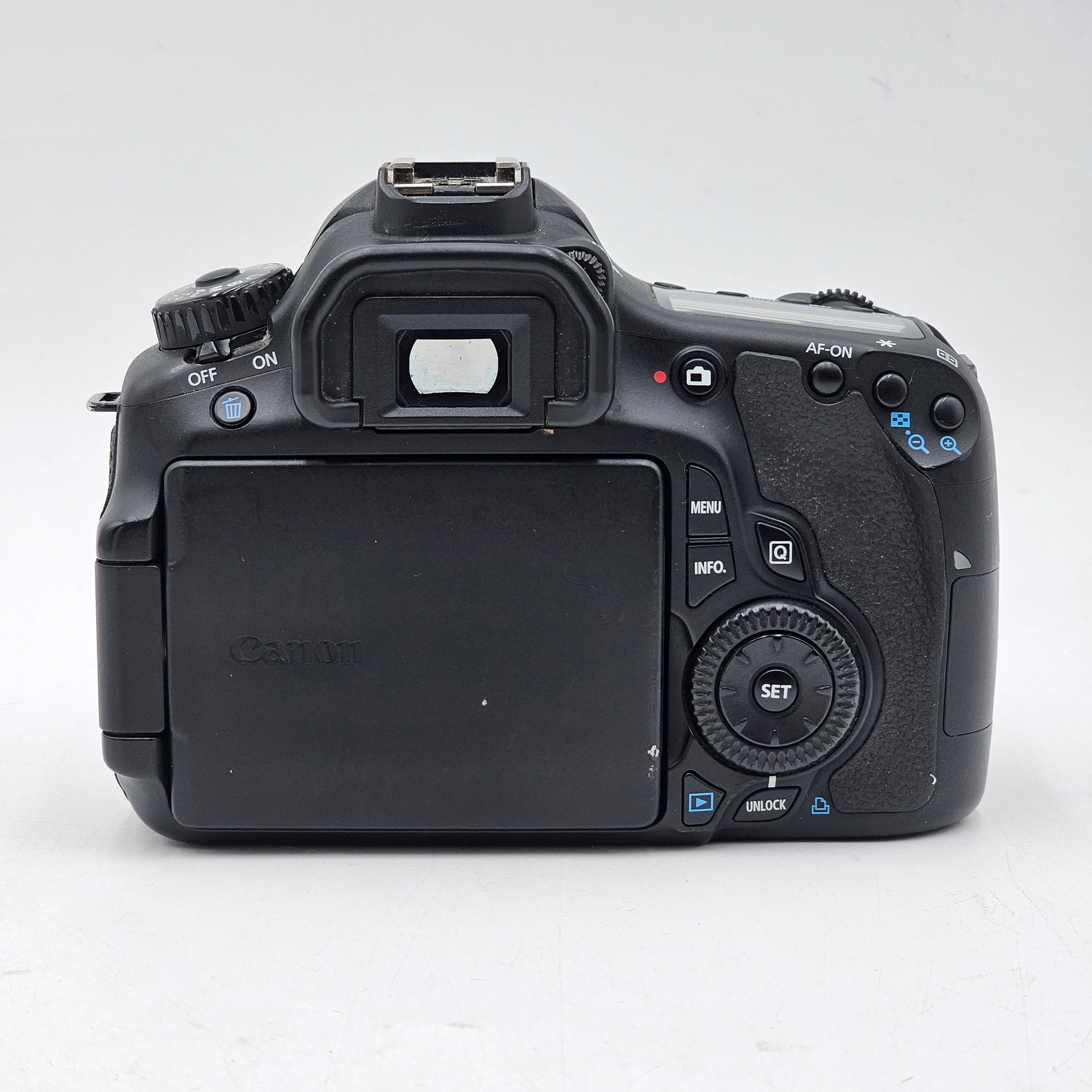 The camera body is in good cosmetic condition with some minimal wear. The LCD and mirror are in good condition with no major wear, scratches or scuffs. Please view our close up photos, as these are taken of the actual item being offered for sale.