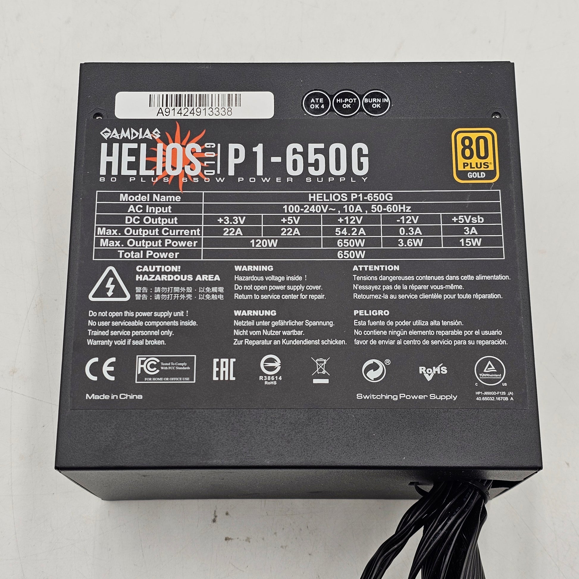 Model Helios 80 Plus Gold PSU P1-650G