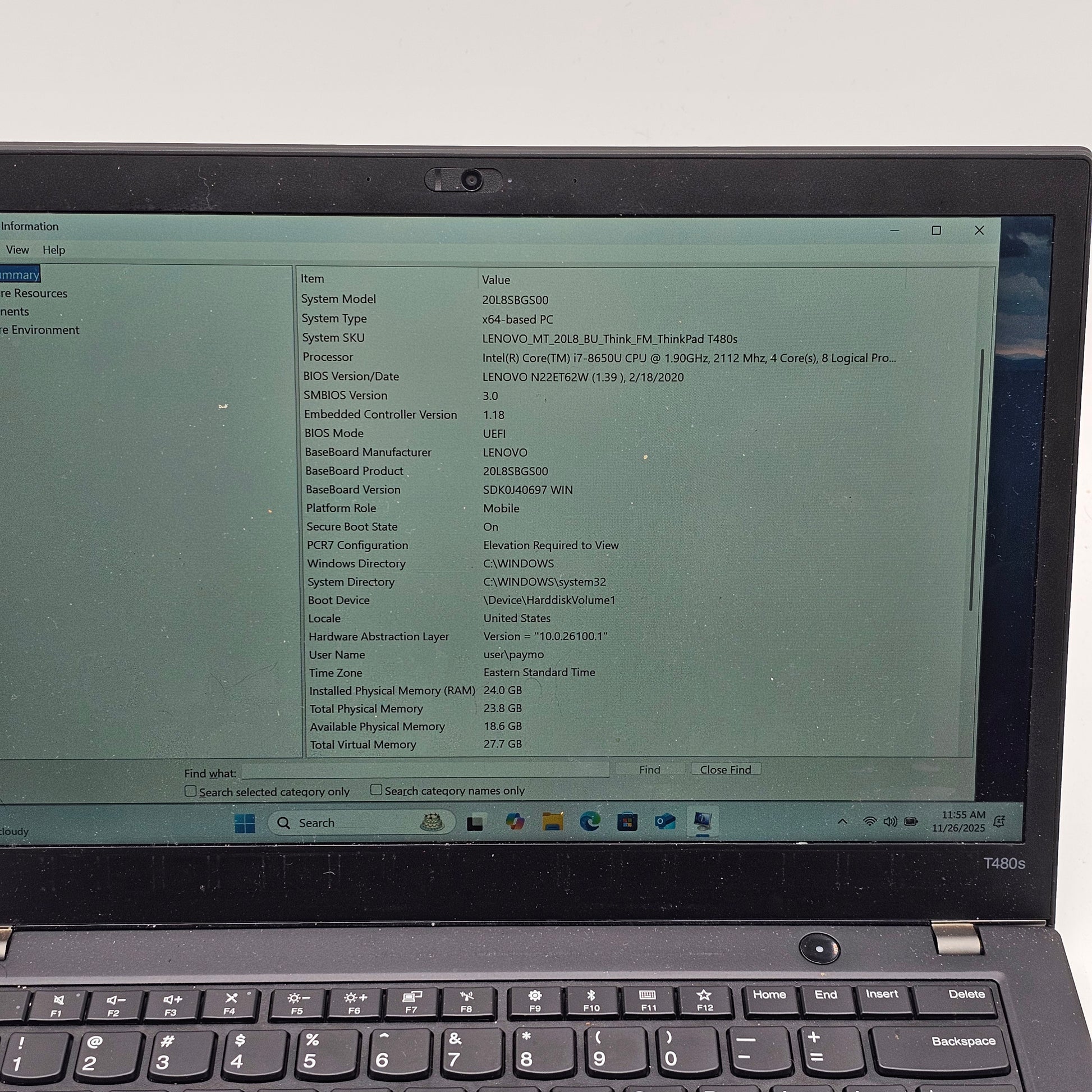 | Model | THINKPAD T480s |